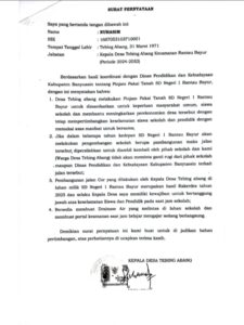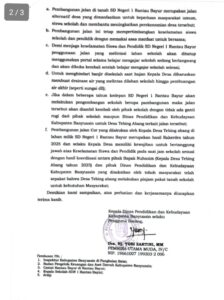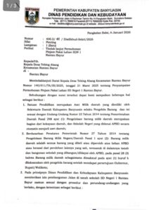 Sorotan tersebut muncul menyusul beredarnya dokumen resmi Disdikbud Banyuasin Nomor 400.3/48/Disdikbud-Sekrt/2026 tertanggal 6 Januari 2026, yang pada prinsipnya memberikan izin pembangunan jalan di atas lahan sekolah SD Negeri 1 Rantau Bayur untuk kepentingan masyarakat Desa Tebing Abang.