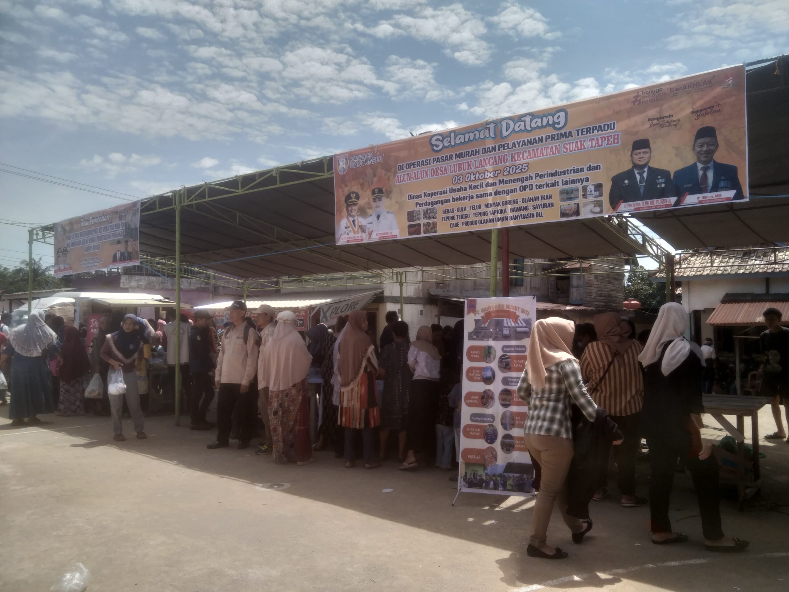 Banyuasin — Operasi Pasar Murah digelar Pemerintah Kabupaten Banyuasin melalui Dinas Koperasi Usaha Kecil dan Menengah Perindustrian dan Perdagangan (Koperindag) Kabupaten Banyuasin, di alun-alun desa lubuk lancang kecamatan Suak Tapeh, Jum’at(3/5/2025)